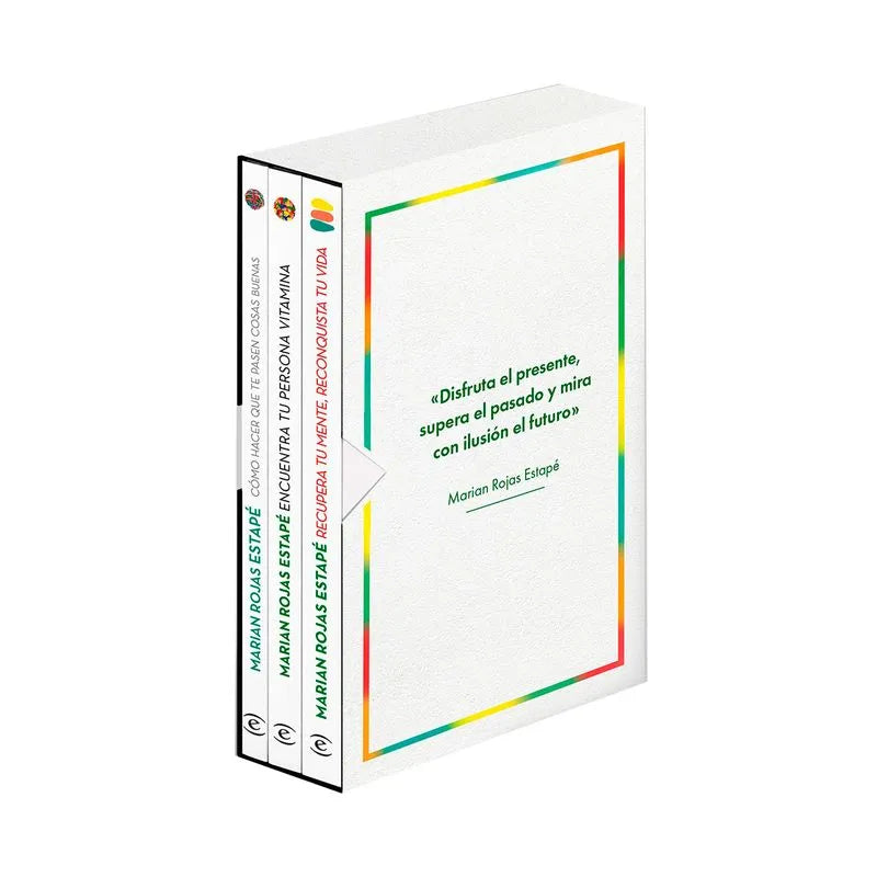 La Dra. Marian Rojas Estapé, además de cambiar la vida de millones de personas, ha dado a conocer el cortisol, la oxitocina y la dopamina, hormonas que influyen en nuestro desarrollo como seres humanos. Por primera vez vas a encontrar juntos los tres libros más vendidos de no ficción de los últimos años: Cómo hacer que te pasen cosas buenas, Encuentra tu persona vitamina y Recupera tu mente, reconquista tu vida.Obras que se han convertido en auténticos best sellers mundiales, han sido traducidas a más de 20 lenguas y publicadas en más de 40 países, y han encumbrado a su autora a lo más alto de la divulgación científica y psicológica de nuestro país.