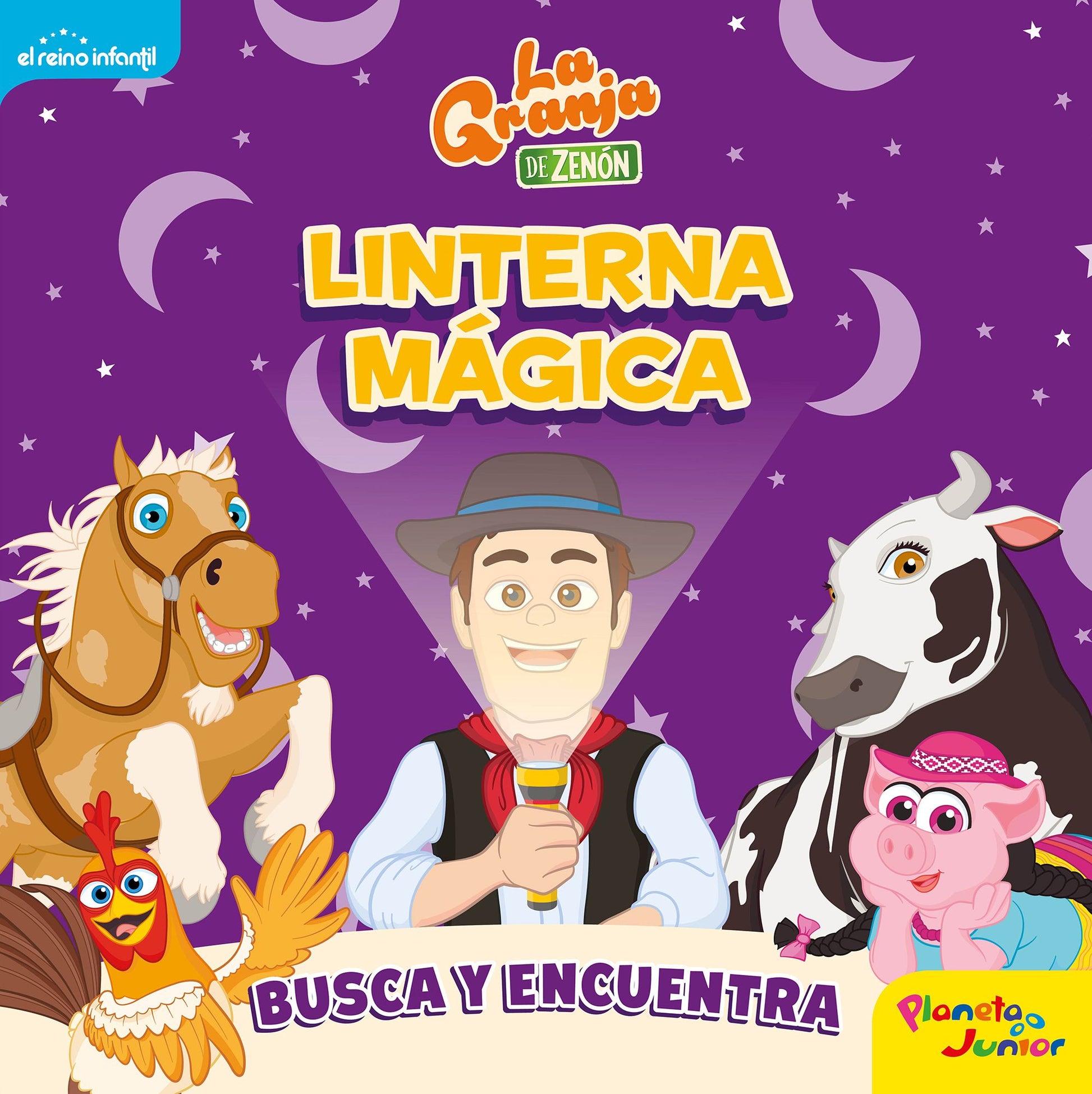Descubre qué personajes y objetos se esconden en la granja de Zenón: dentro de la casa, en el prado, bajo las estrellas, junto al abrevadero...Inserta la linterna mágica entre las páginas para ver todos los detalles que se ocultan en cada escena.